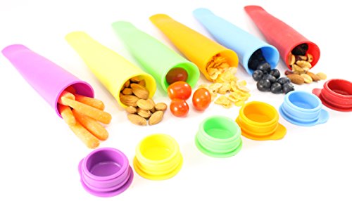 Multi-purpose 6 pcs silicone ice pop makers, lunch containers, bento box accessories for fill your with your favorite snacks and treats to have in between meals or when travelling.
